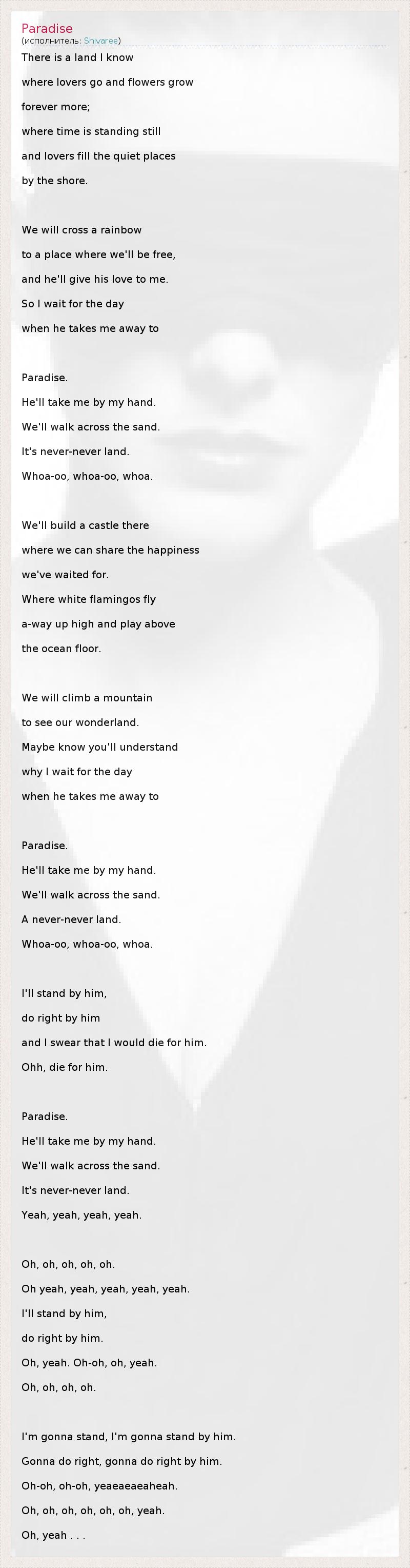 А как ты думаешь, о чем песня "Paradise" ?