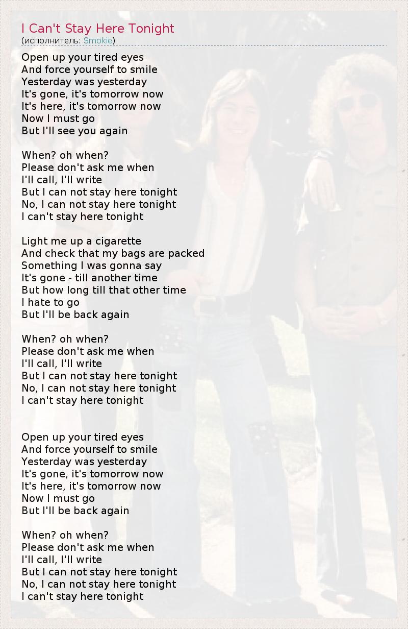 ГлавнаяИсполнителиSmokieI Can't Stay Here Tonight