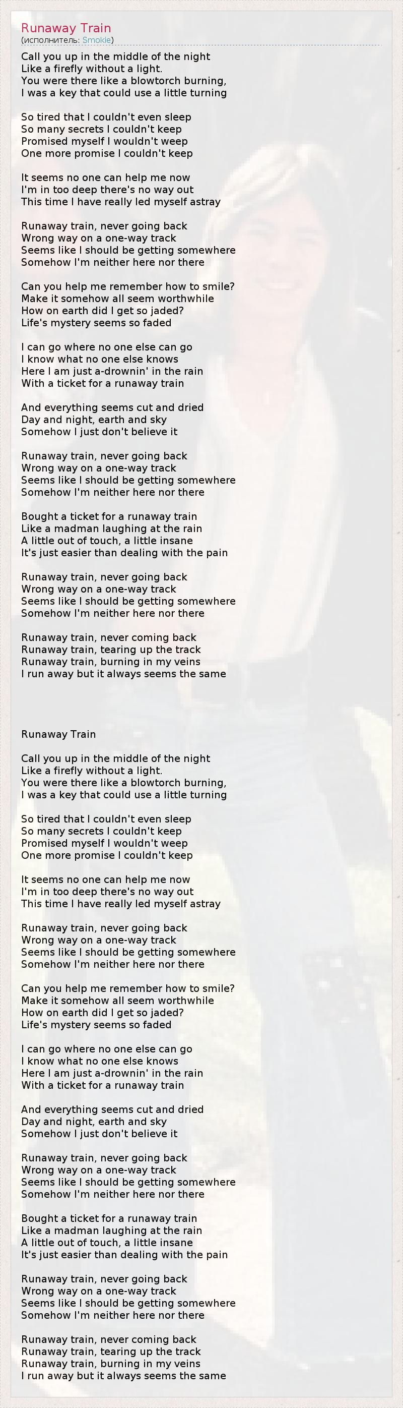 А как ты думаешь, о чем песня "Runaway Train" ?