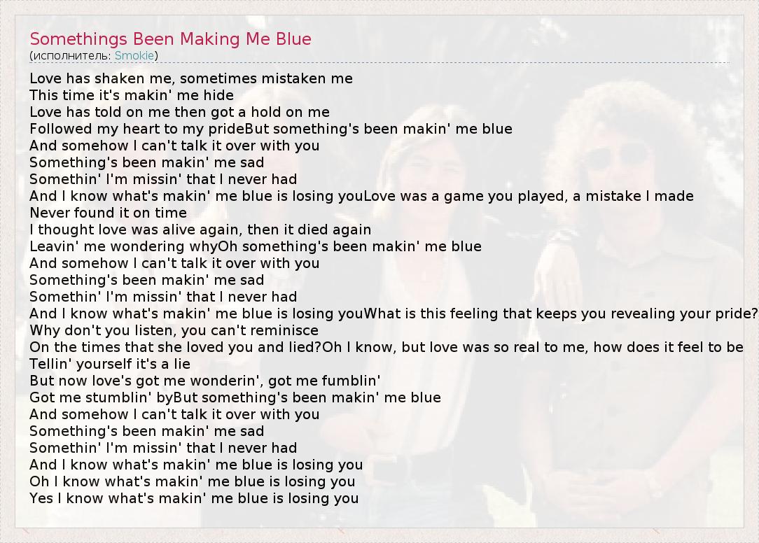 ГлавнаяИсполнителиSmokieSomethings Been Making Me Blue