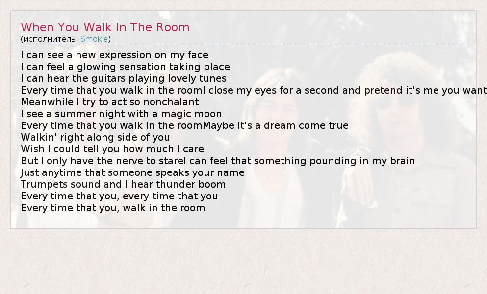 А как ты думаешь, о чем песня "When You Walk In The Room" ?