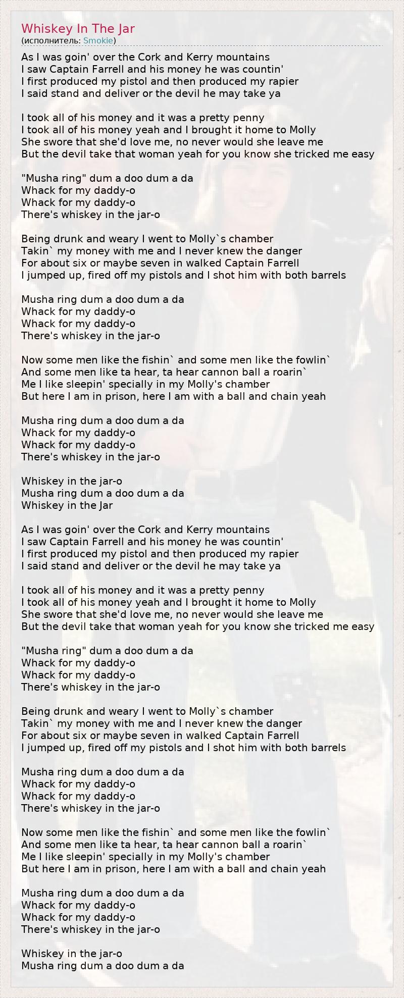 А как ты думаешь, о чем песня "Whiskey In The Jar" ?