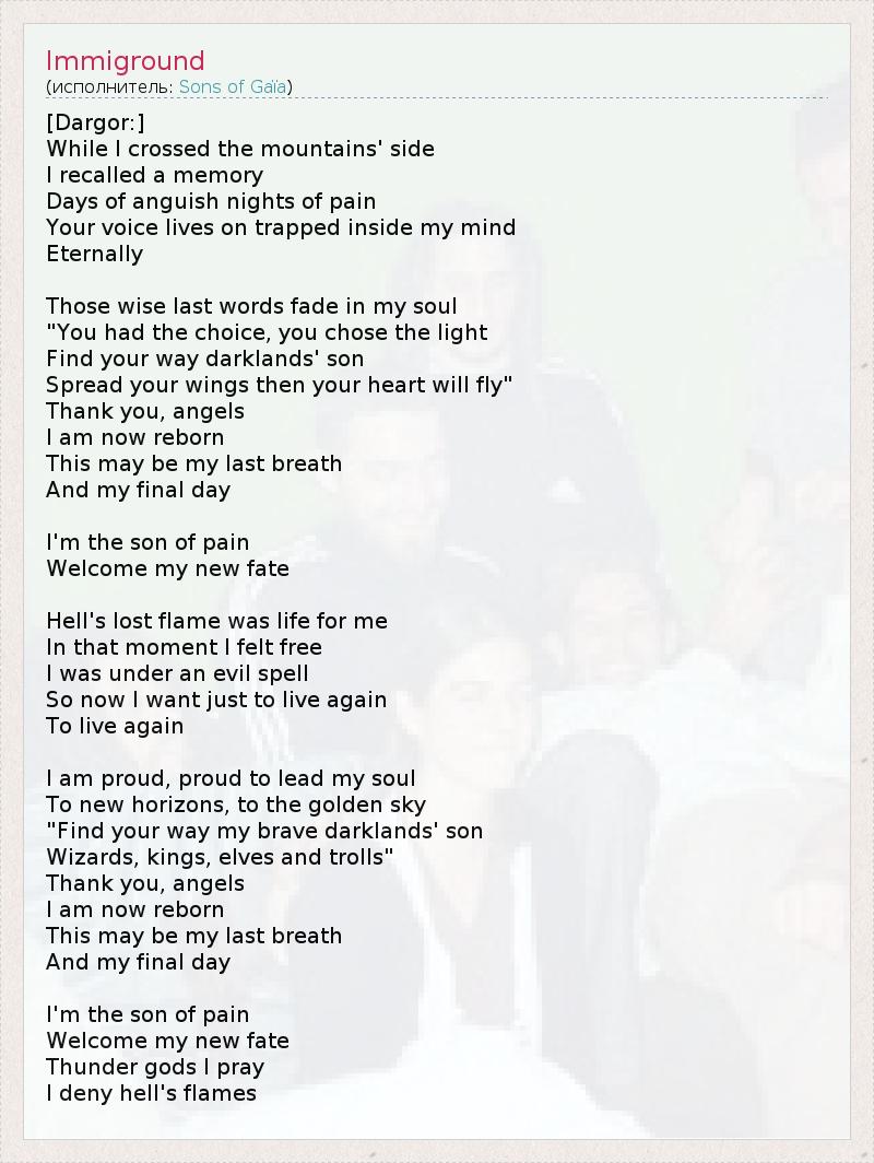 А как ты думаешь, о чем песня "Immiground" ?