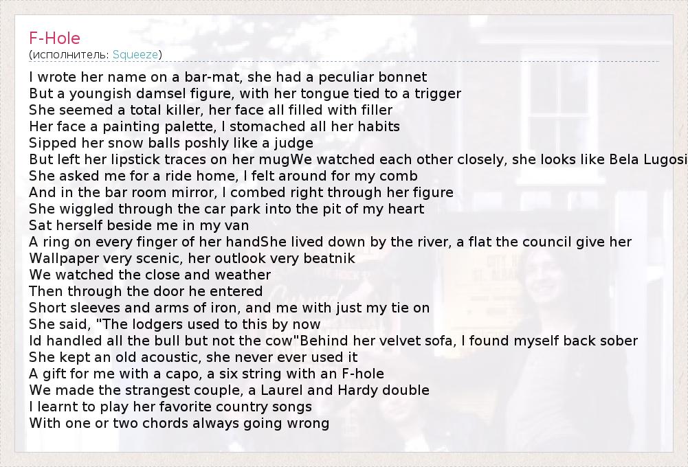 Это интересно:Squeeze — английская группа новой волны, в творчестве которой мотивы панк-, паб-, глэм- и арт-рока соеднились с классической поп-традицией 60-х годов. Крис Диффорд и Гленн Тилбрук (первый из них писал тексты, второй — музыку) никогда не скрывали того, что своими кумирами считают Леннона и Маккартни.История группы началась, когда Крис Диффорд (родился 11 апреля 1954 года) поместил на витрине... продолжение