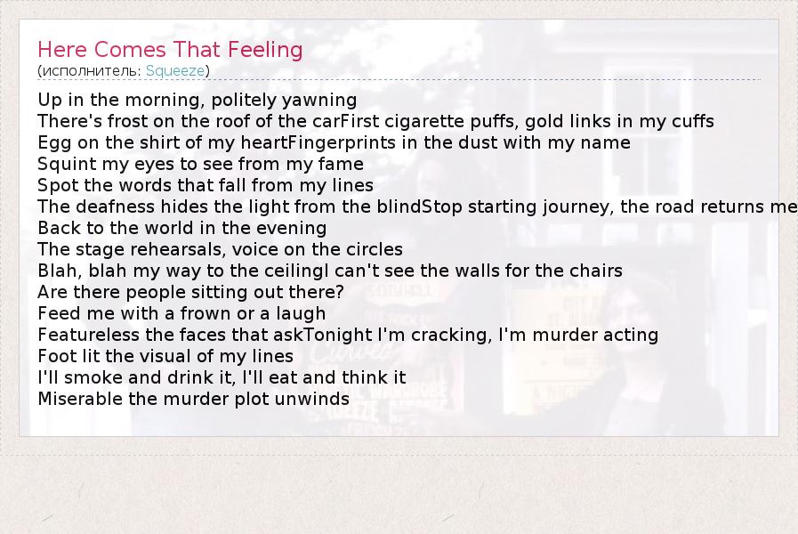 ГлавнаяИсполнителиSqueezeHere Comes That Feeling