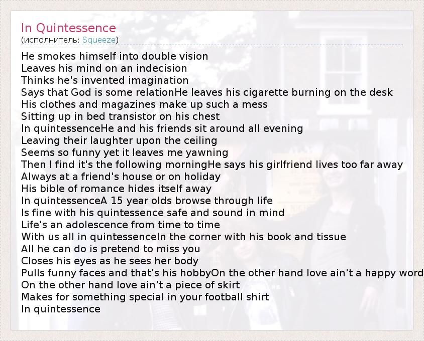 А как ты думаешь, о чем песня "In Quintessence" ?