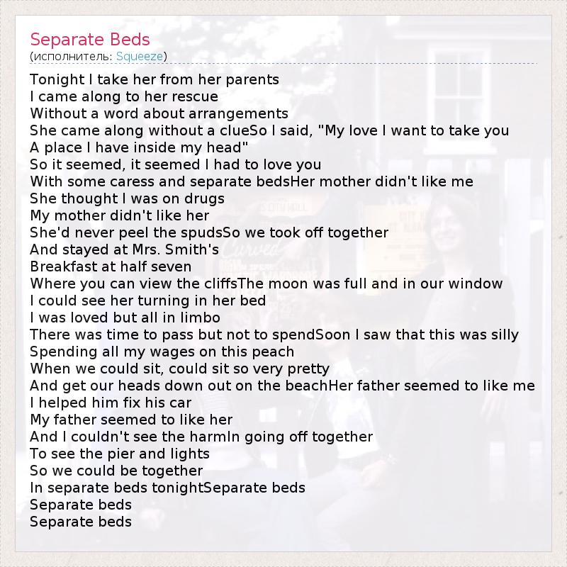 А как ты думаешь, о чем песня "Separate Beds" ?