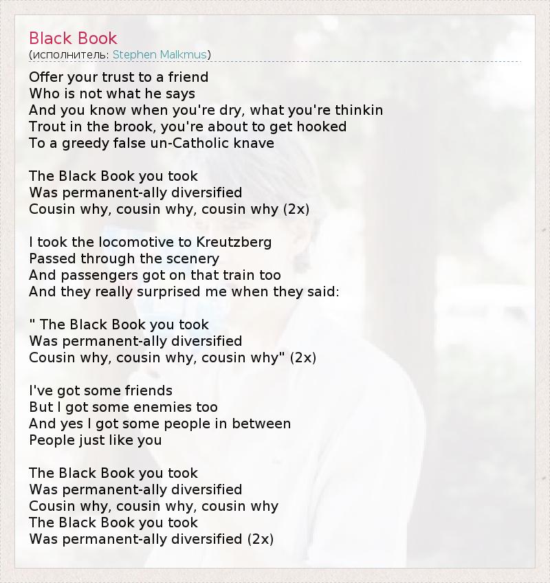 А как ты думаешь, о чем песня "Black Book" ?