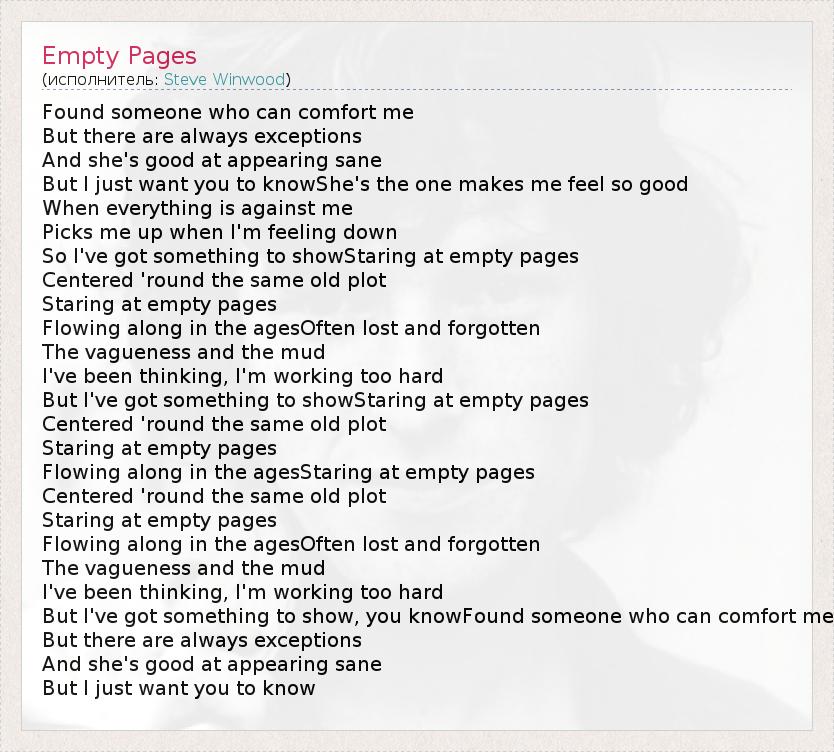 А как ты думаешь, о чем песня "Empty Pages" ?