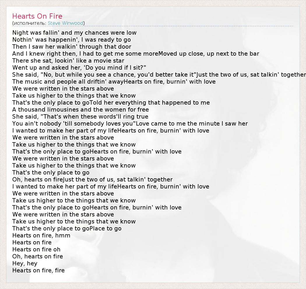 А как ты думаешь, о чем песня "Hearts On Fire" ?