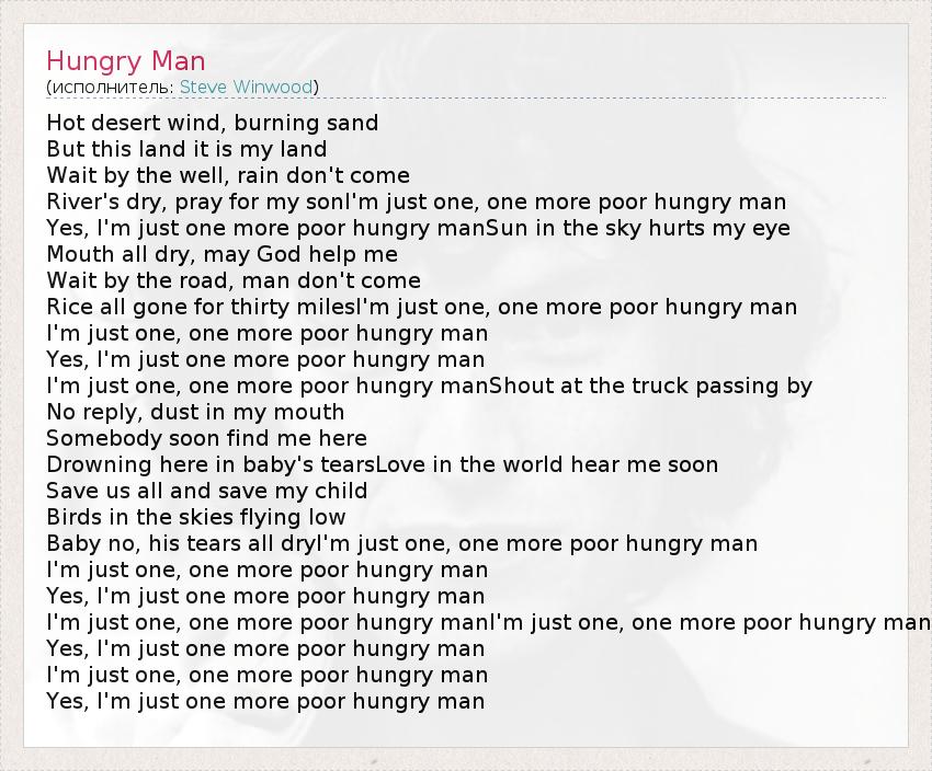 А как ты думаешь, о чем песня "Hungry Man" ?