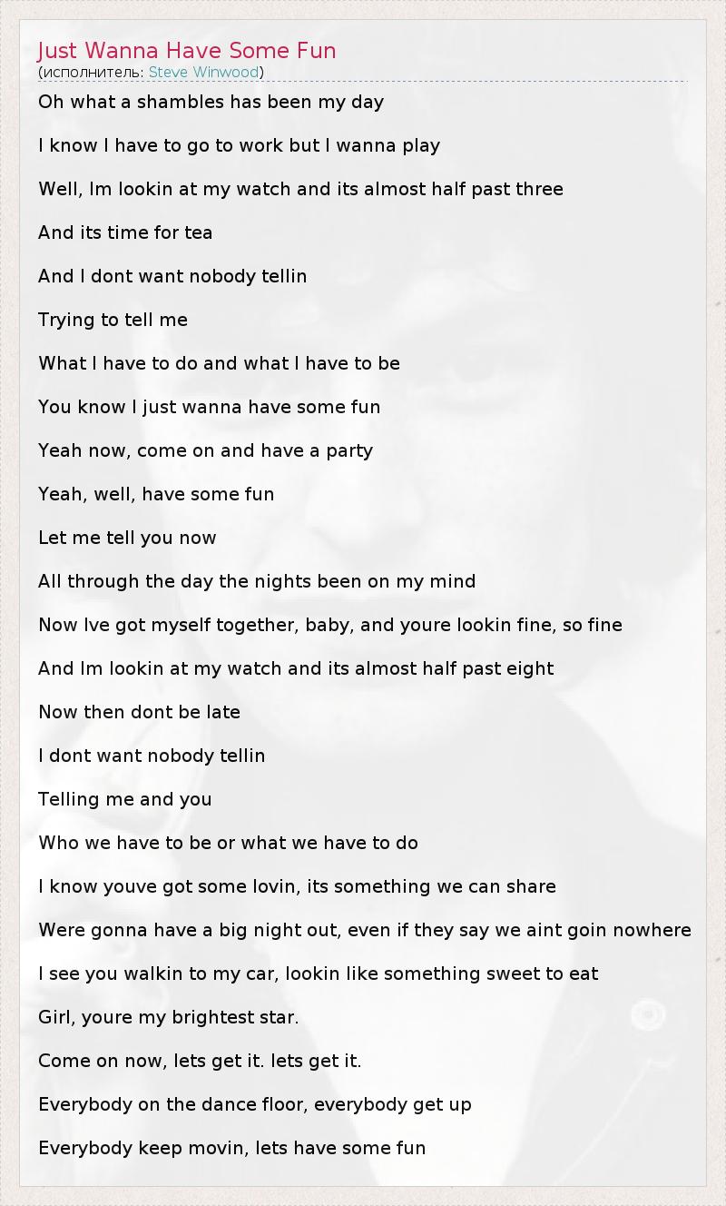 ГлавнаяИсполнителиSteve WinwoodJust Wanna Have Some Fun
