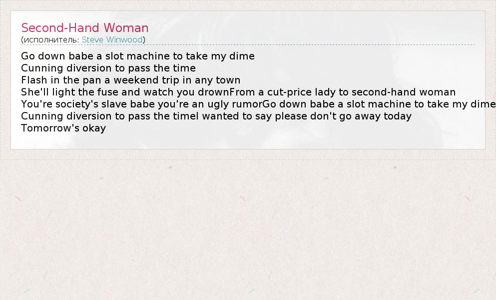 А как ты думаешь, о чем песня "Second-Hand Woman" ?