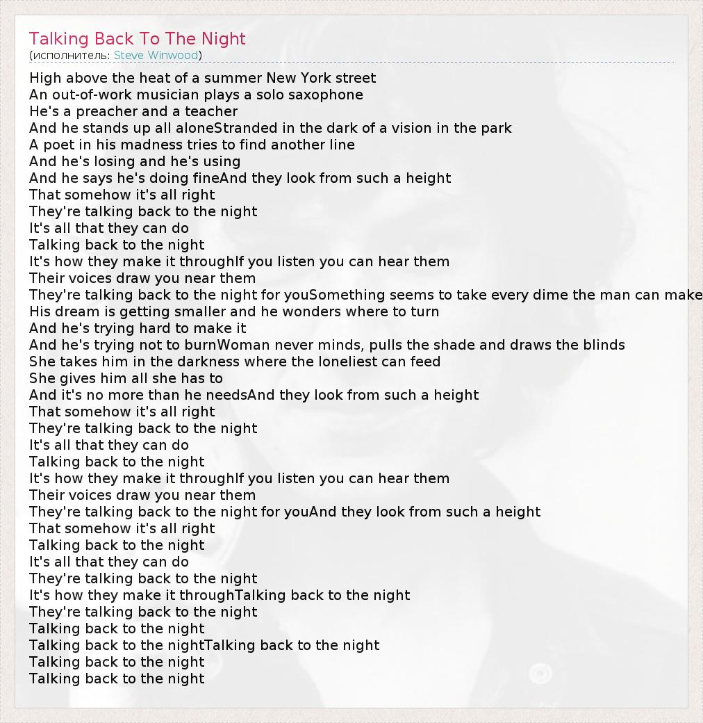 А как ты думаешь, о чем песня "Talking Back To The Night" ?