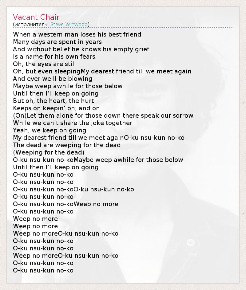 А как ты думаешь, о чем песня "Vacant Chair" ?