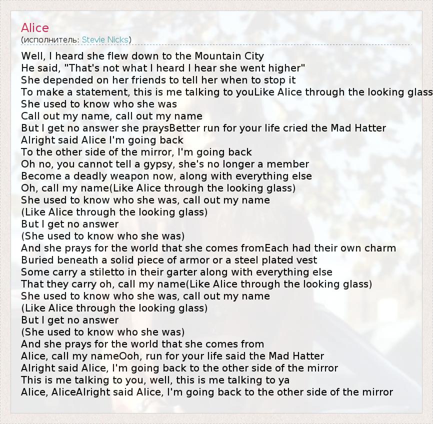 Alice, call my nameOoh, run for your life said the Mad Hatter