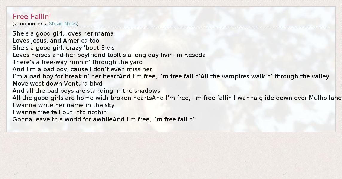 А как ты думаешь, о чем песня "Free Fallin'" ?