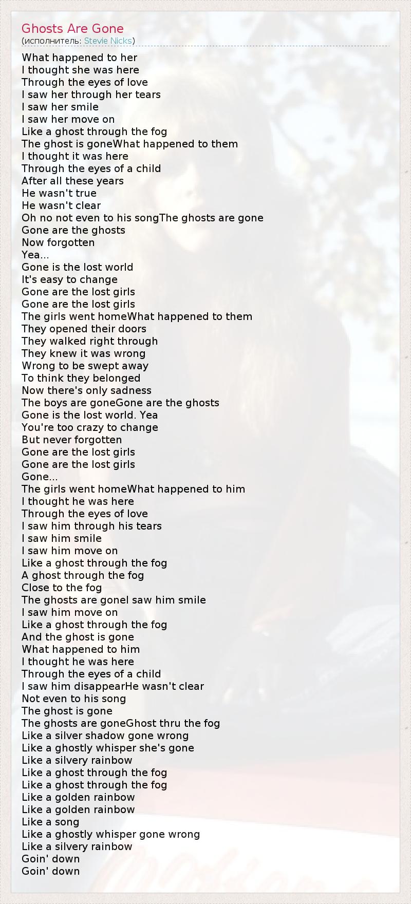 А как ты думаешь, о чем песня "Ghosts Are Gone" ?