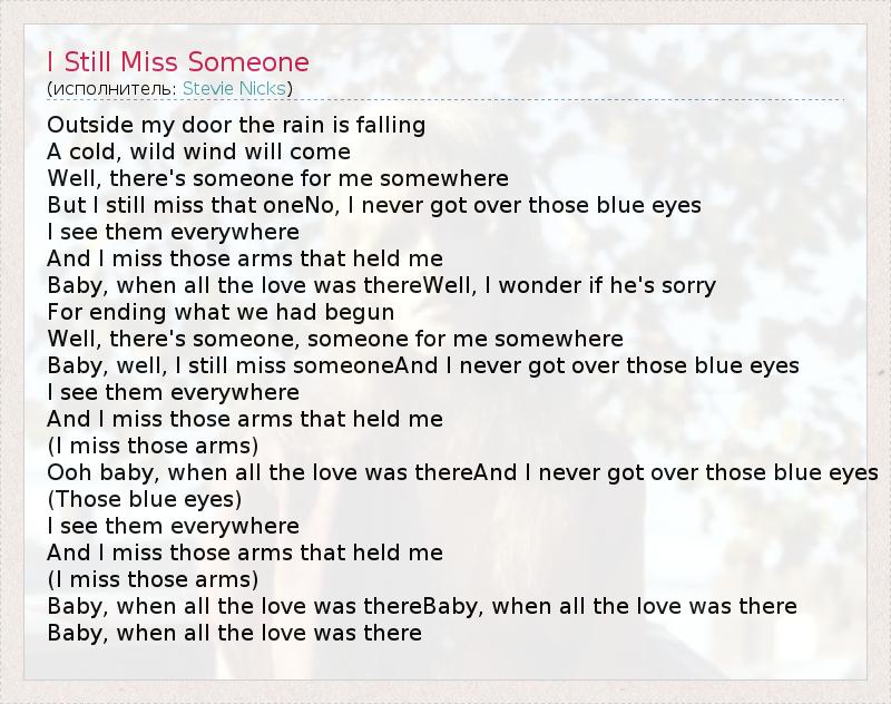 А как ты думаешь, о чем песня "I Still Miss Someone" ?