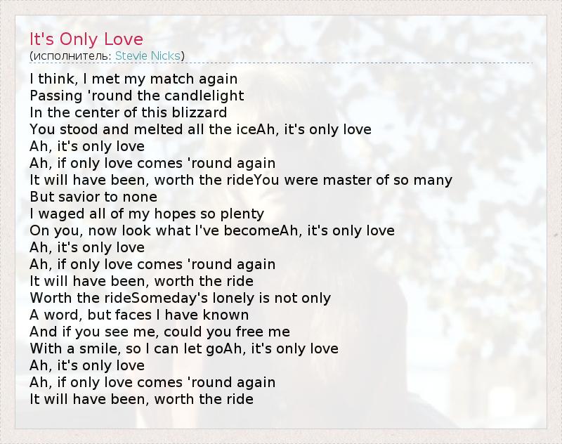А как ты думаешь, о чем песня "It's Only Love" ?