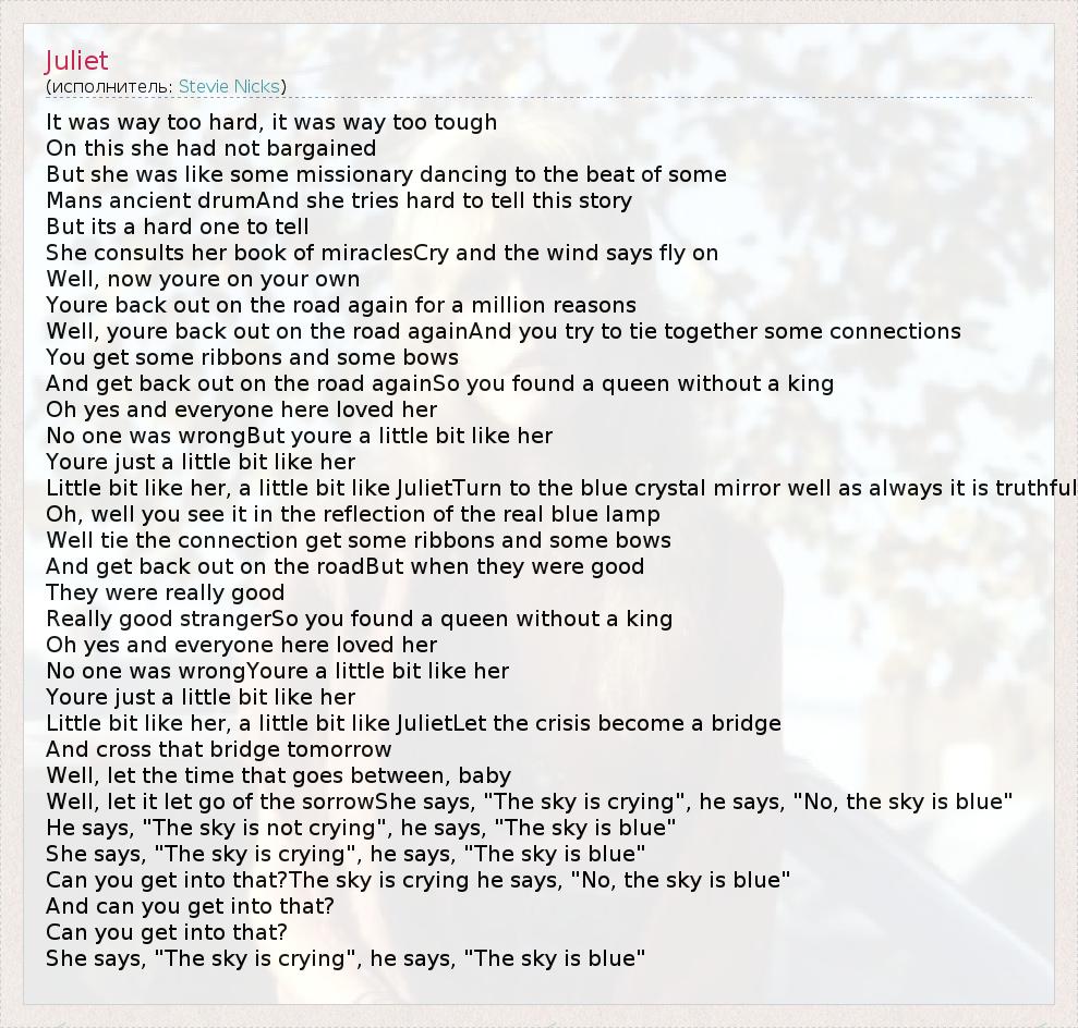 Well, let it let go of the sorrowShe says, "The sky is crying", he says, "No, the sky is blue"