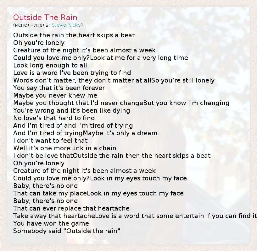 А как ты думаешь, о чем песня "Outside The Rain" ?