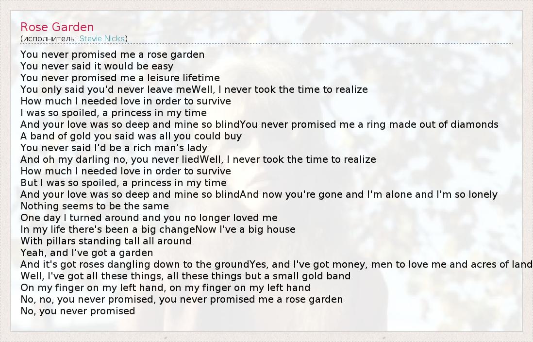 А как ты думаешь, о чем песня "Rose Garden" ?
