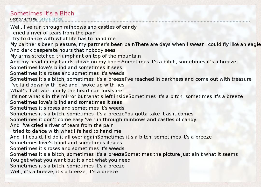 А как ты думаешь, о чем песня "Sometimes It's a Bitch" ?