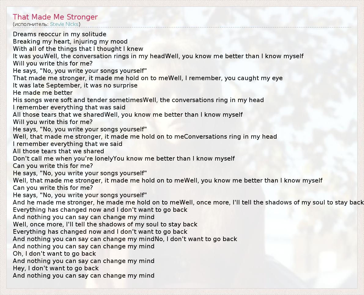 Well, that made me stronger, it made me hold on to meWell, you know me better than I know myself
