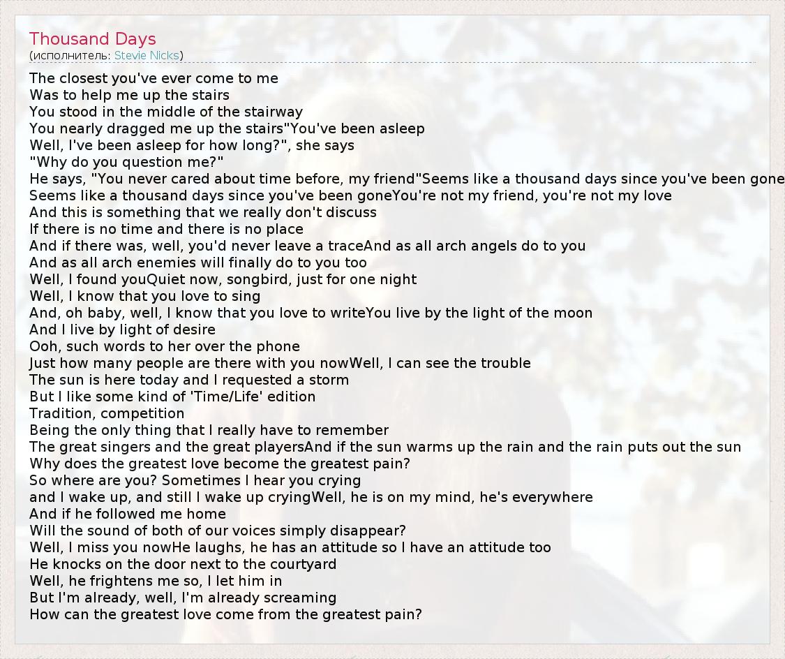 А как ты думаешь, о чем песня "Thousand Days" ?