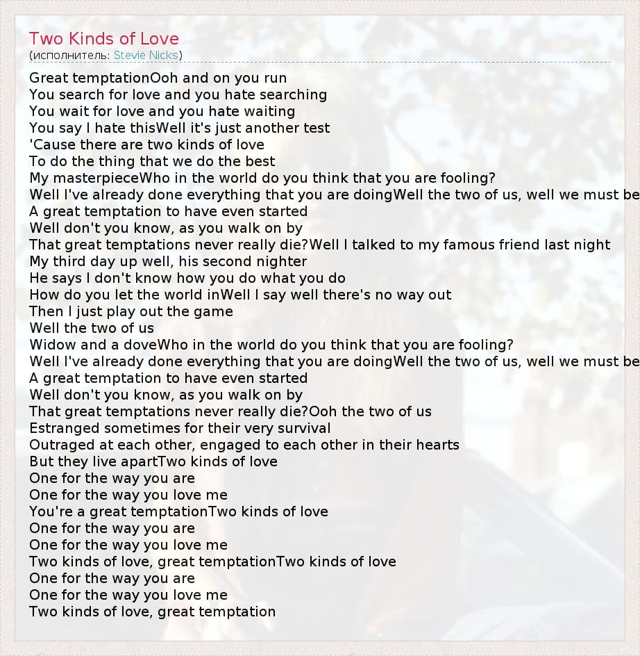 А как ты думаешь, о чем песня "Two Kinds of Love" ?