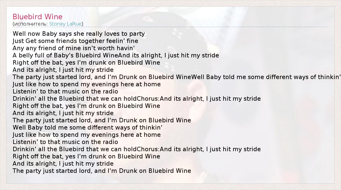 А как ты думаешь, о чем песня "Bluebird Wine" ?