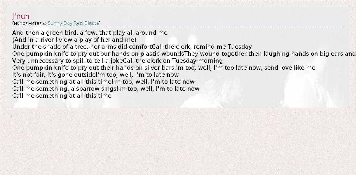 Это интересно:Sunny Day Real Estate (или SDRE) (с англ. Собственность солнечного дня) — американская альтернативная рок-группа из города Сиэттл, штат Вашингтон. Группа образовалась в 1992 году под первоначальным названием «Empty Set» и включала в себя Дэна Хэрнера (гитара, вокал), Нэйта Мэндела (бас) и Уильяма Голдсмита (барабаны).Ребята записали демо под этим названием, но тут вдруг обнаружилось,... продолжение