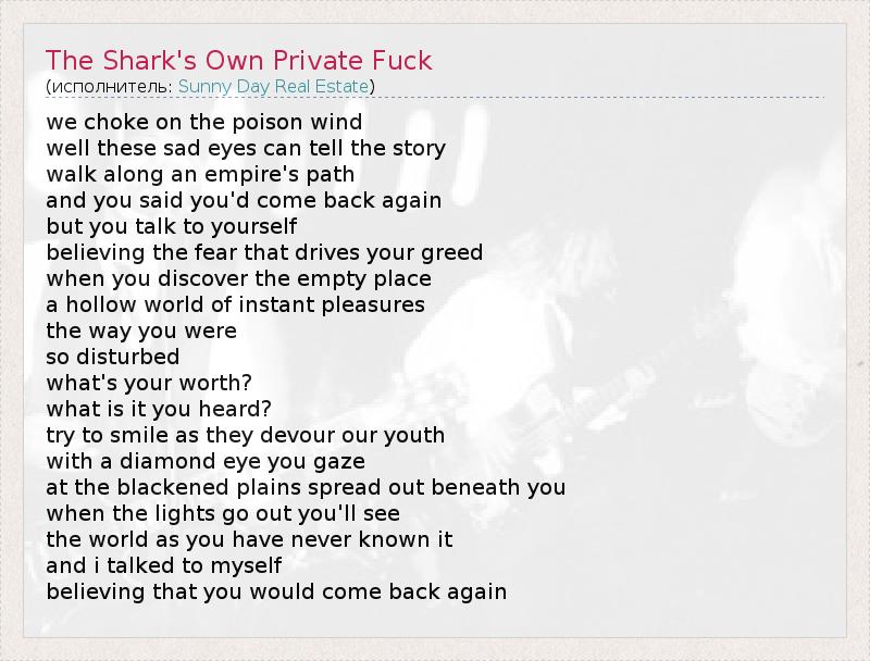 А как ты думаешь, о чем песня "The Shark's Own Private Fuck" ?
