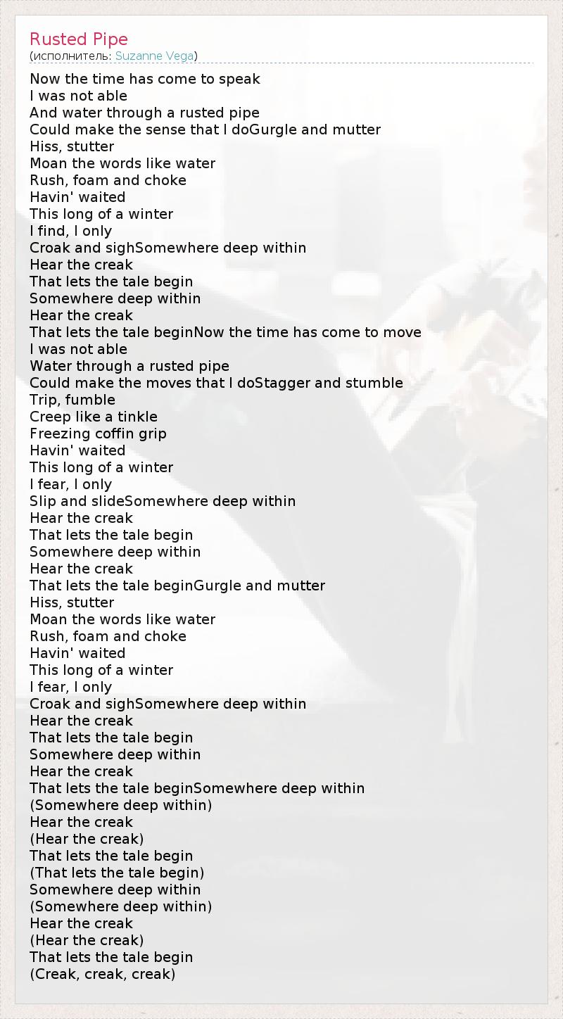 А как ты думаешь, о чем песня "Rusted Pipe" ?