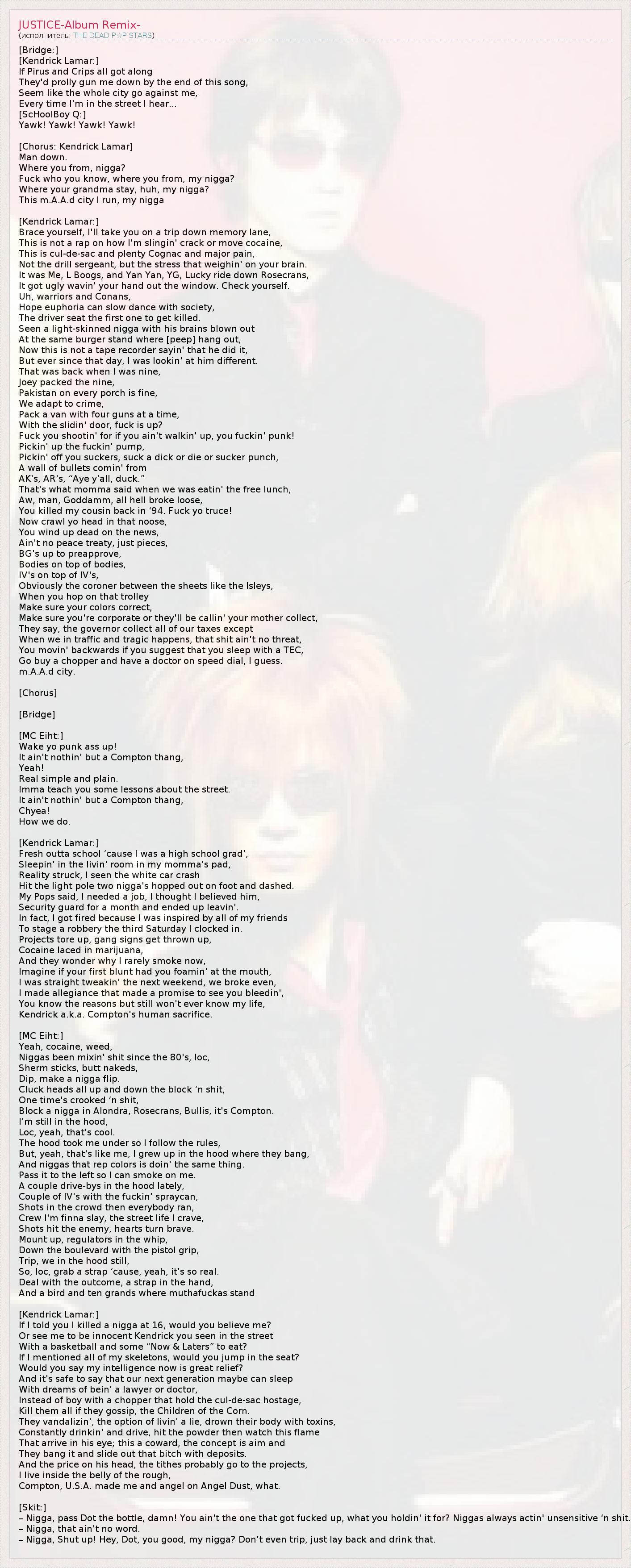 А как ты думаешь, о чем песня "JUSTICE-Album Remix-" ?