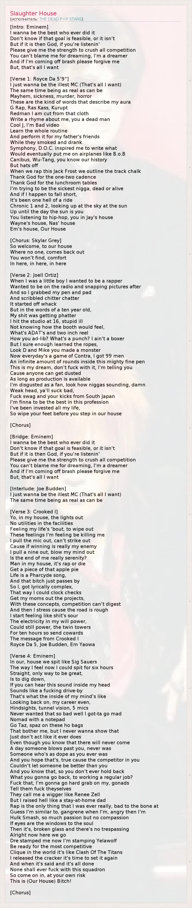 А как ты думаешь, о чем песня "Slaughter House" ?
