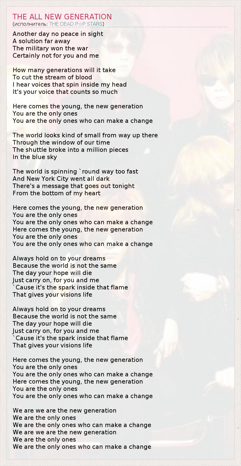 А как ты думаешь, о чем песня "THE ALL NEW GENERATION" ?