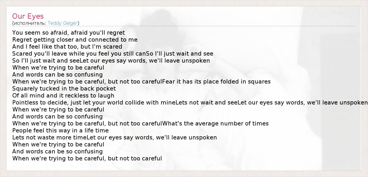 А как ты думаешь, о чем песня "Our Eyes" ?