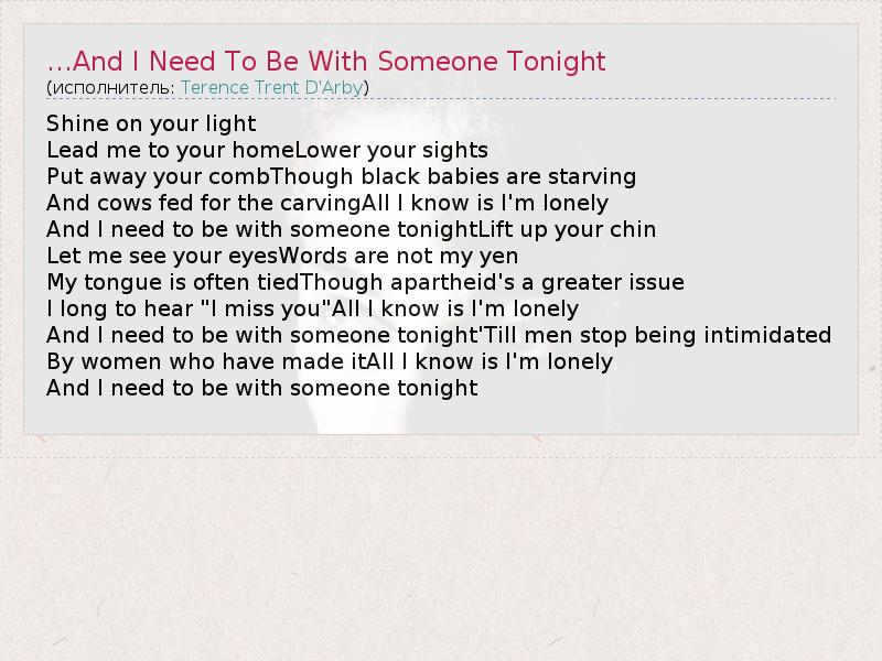 А как ты думаешь, о чем песня "...And I Need To Be With Someone Tonight" ?