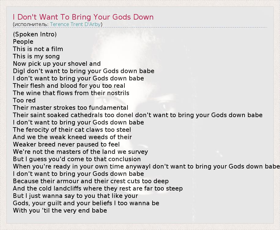 ГлавнаяИсполнителиTerence Trent D'ArbyI Don't Want To Bring Your Gods Down