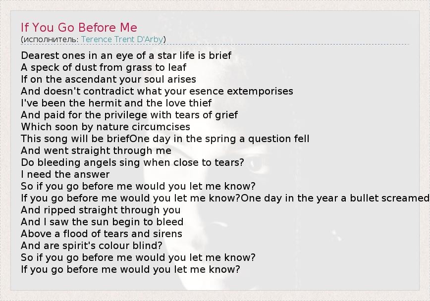 А как ты думаешь, о чем песня "If You Go Before Me" ?