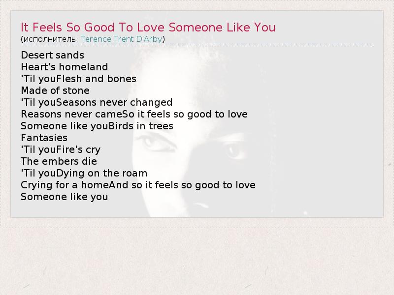 ГлавнаяИсполнителиTerence Trent D'ArbyIt Feels So Good To Love Someone Like You