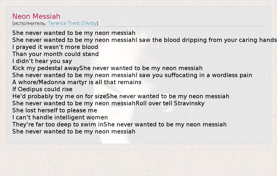 А как ты думаешь, о чем песня "Neon Messiah" ?