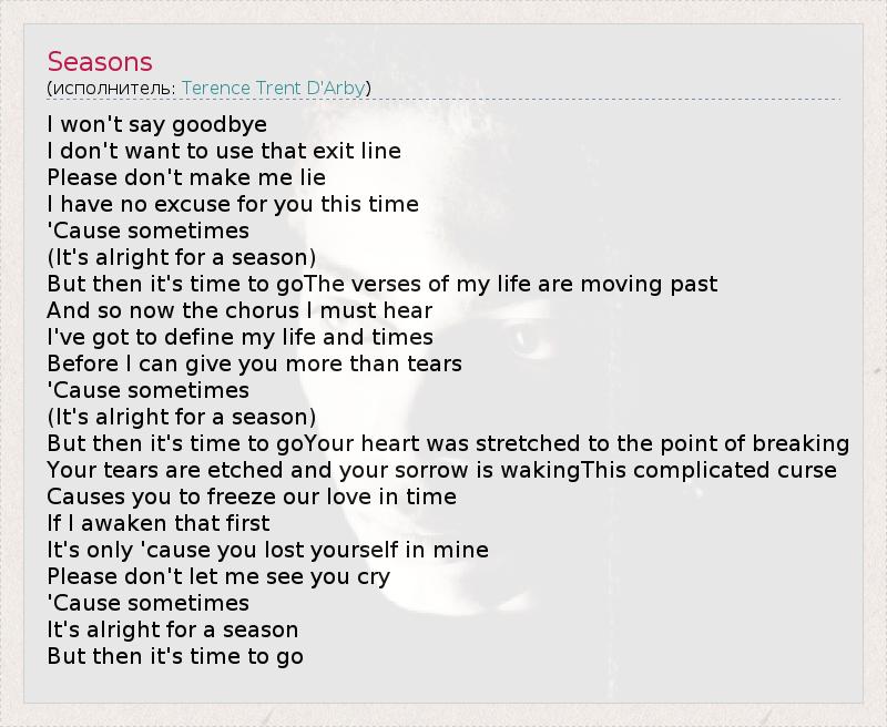 Это интересно:Terence Trent D''Arby - американский певец, композитор и автор текстов (настоящее имя Terence Trent Howard). Тэрэнс родился 15 марта 1962 года в нью-йоркском районе Манхэттэн. В настоящее время проживает в Милане (Италия). Обладая ярким голосом, напоминающим голос знаменитого Сэма Кука (Sam Cooke), молодой певец обратил на себя внимание ещё в школьные годы. В творчестве D''Arby можно найти влияние таких суперзвёзд,... продолжение