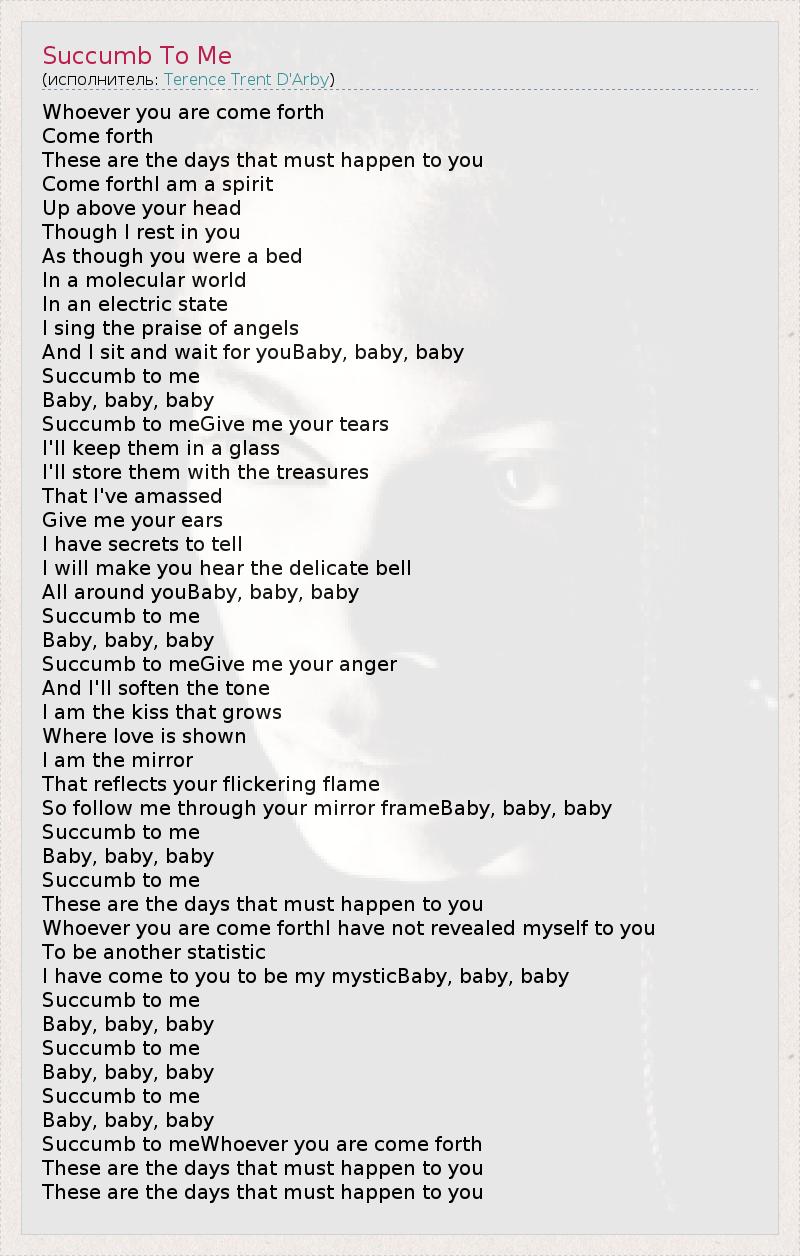 А как ты думаешь, о чем песня "Succumb To Me" ?