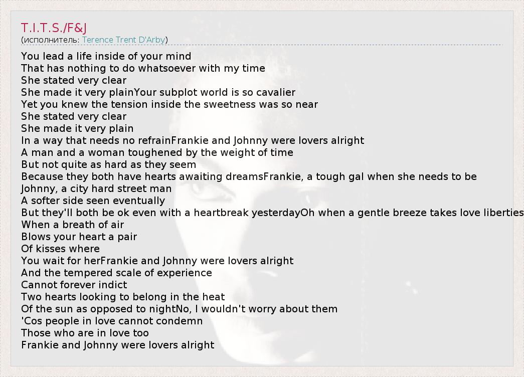 In a way that needs no refrainFrankie and Johnny were lovers alright