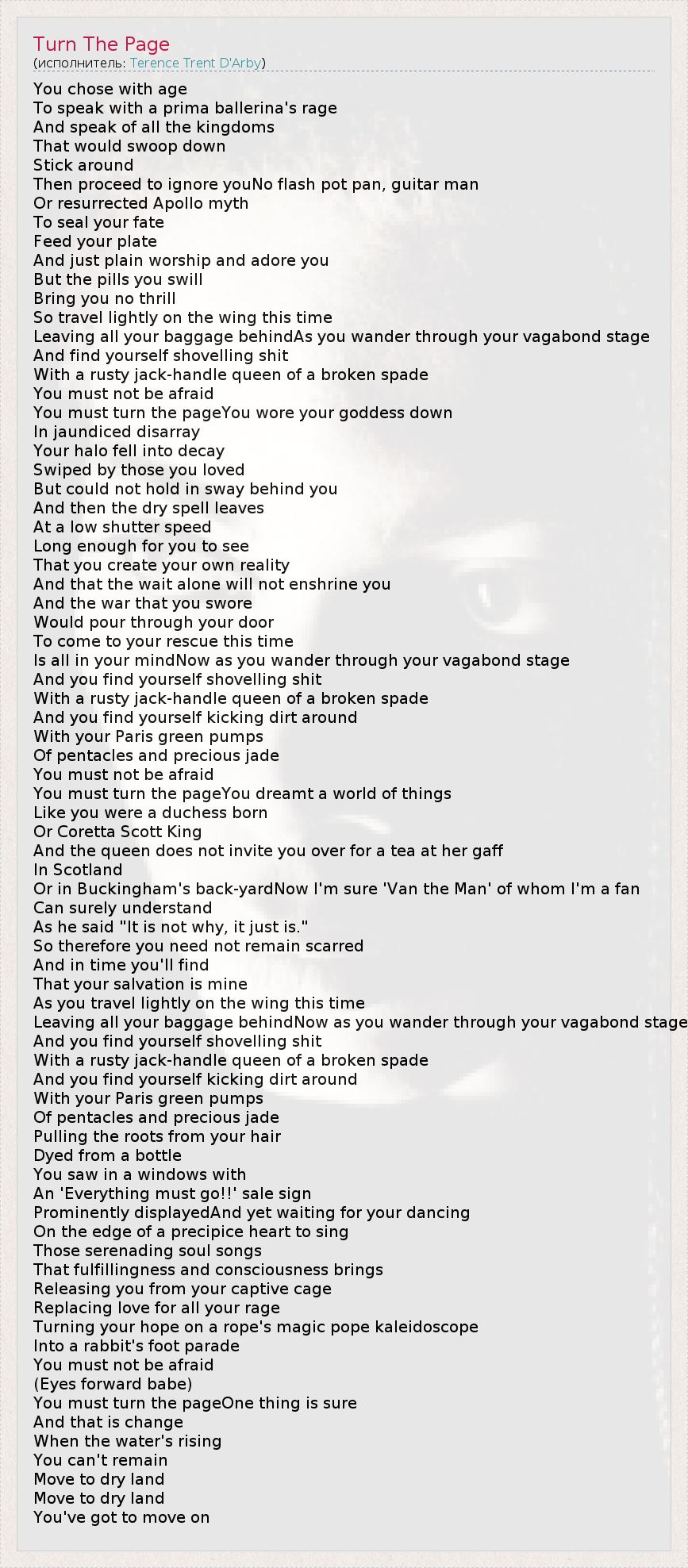А как ты думаешь, о чем песня "Turn The Page" ?