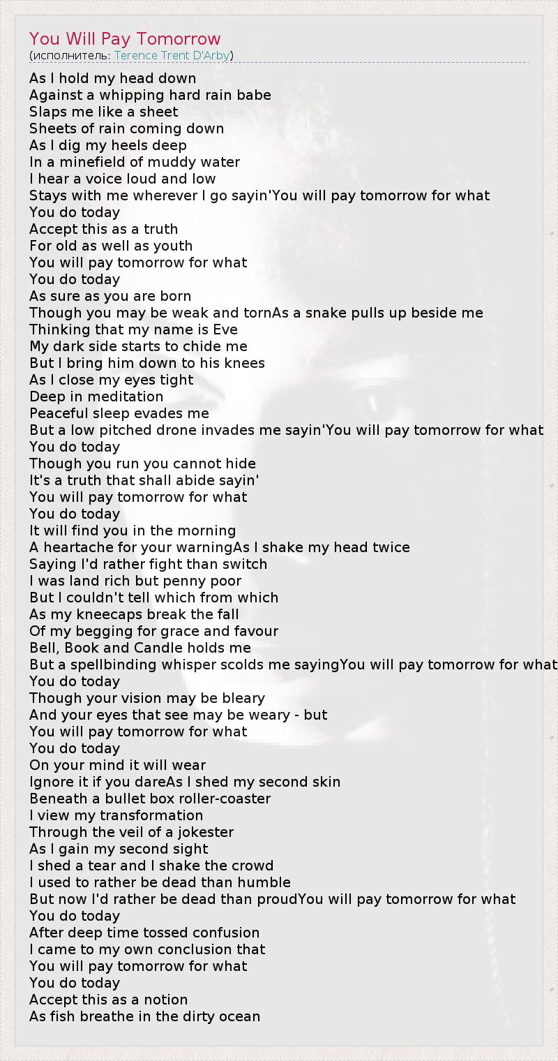 А как ты думаешь, о чем песня "You Will Pay Tomorrow" ?