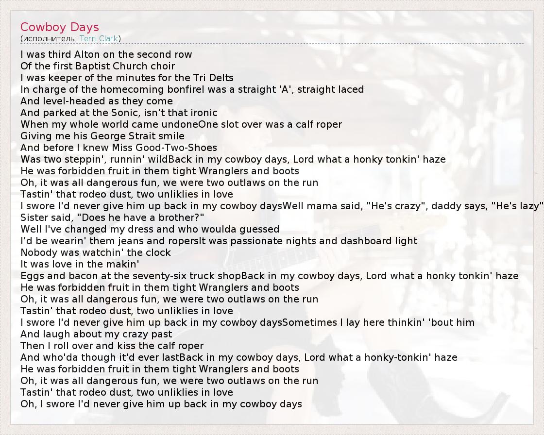 А как ты думаешь, о чем песня "Cowboy Days" ?